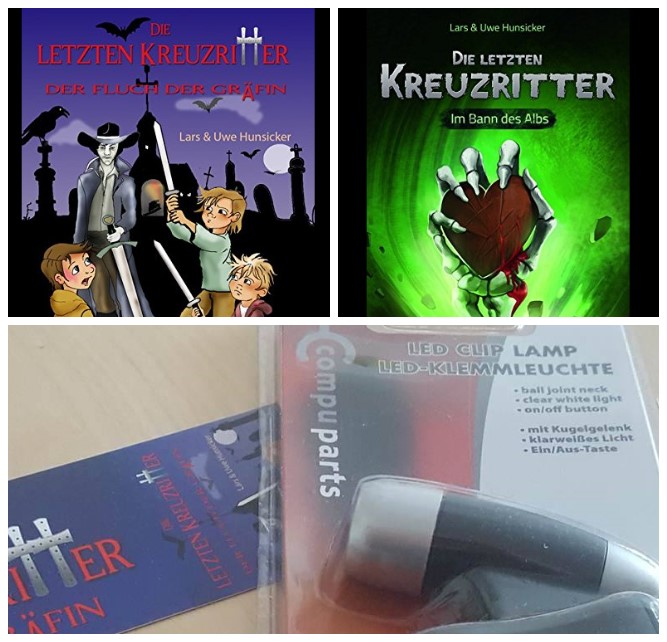 Je 1 Buch (Print) der drei oben genannten Titel zum Aussuchen mit passenden Goodies